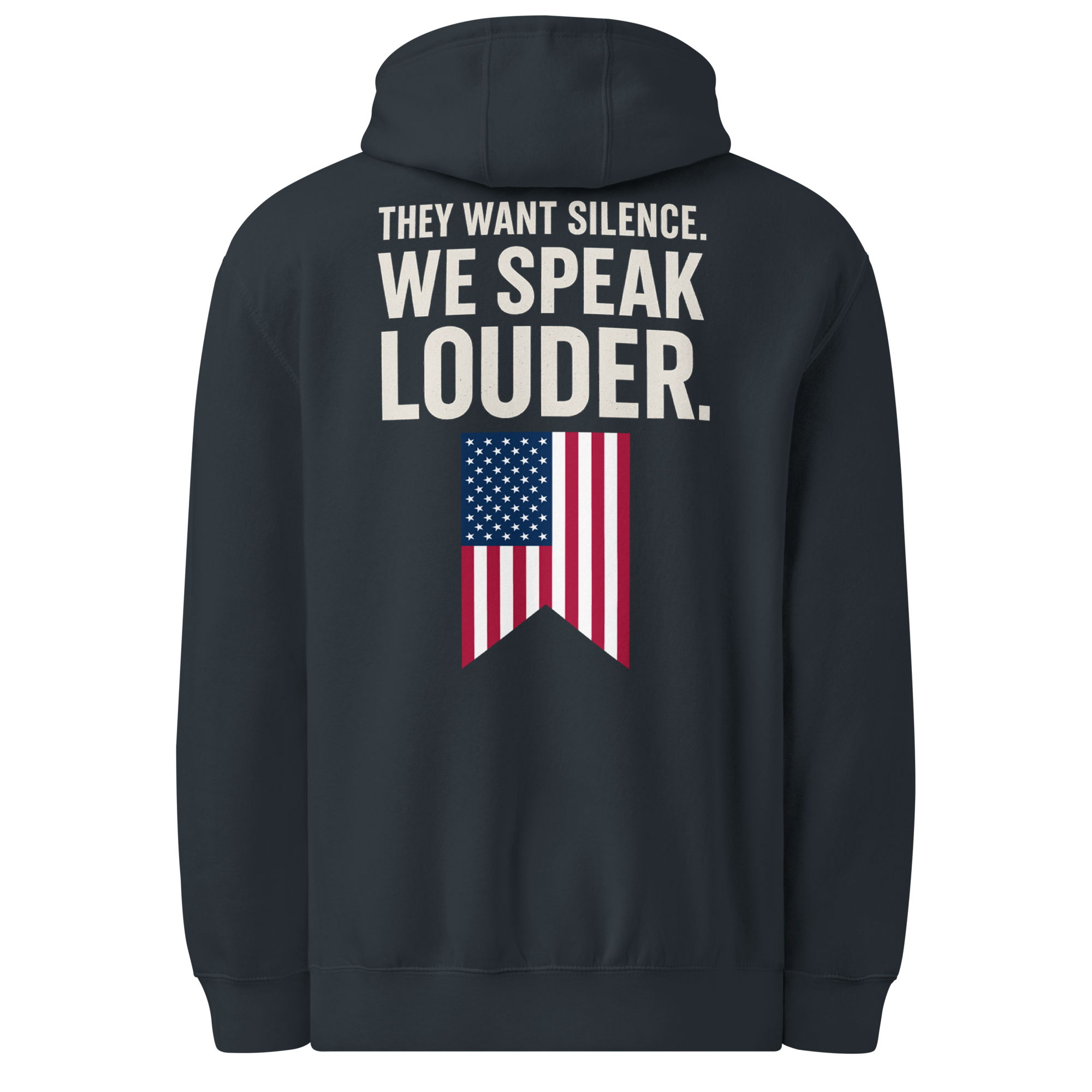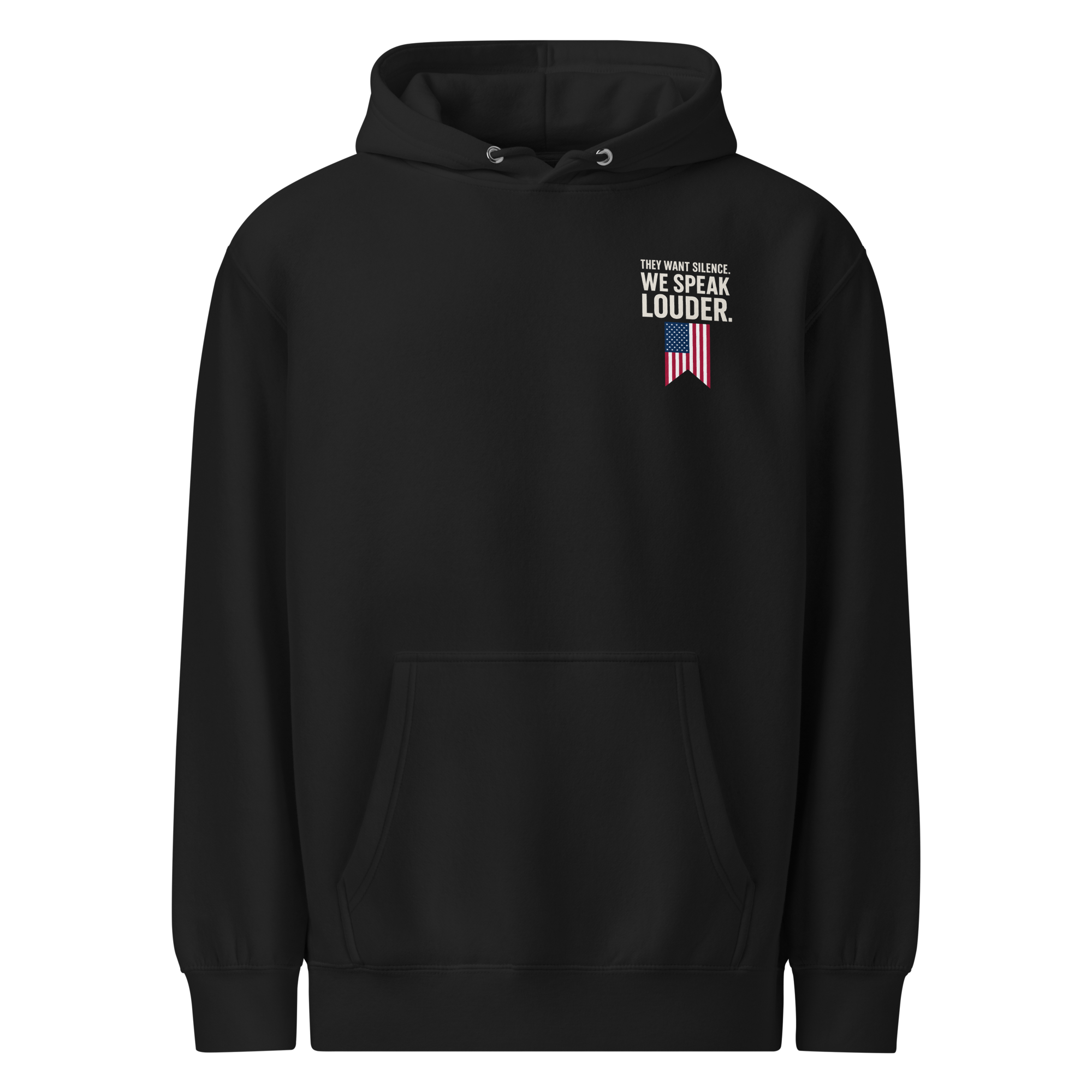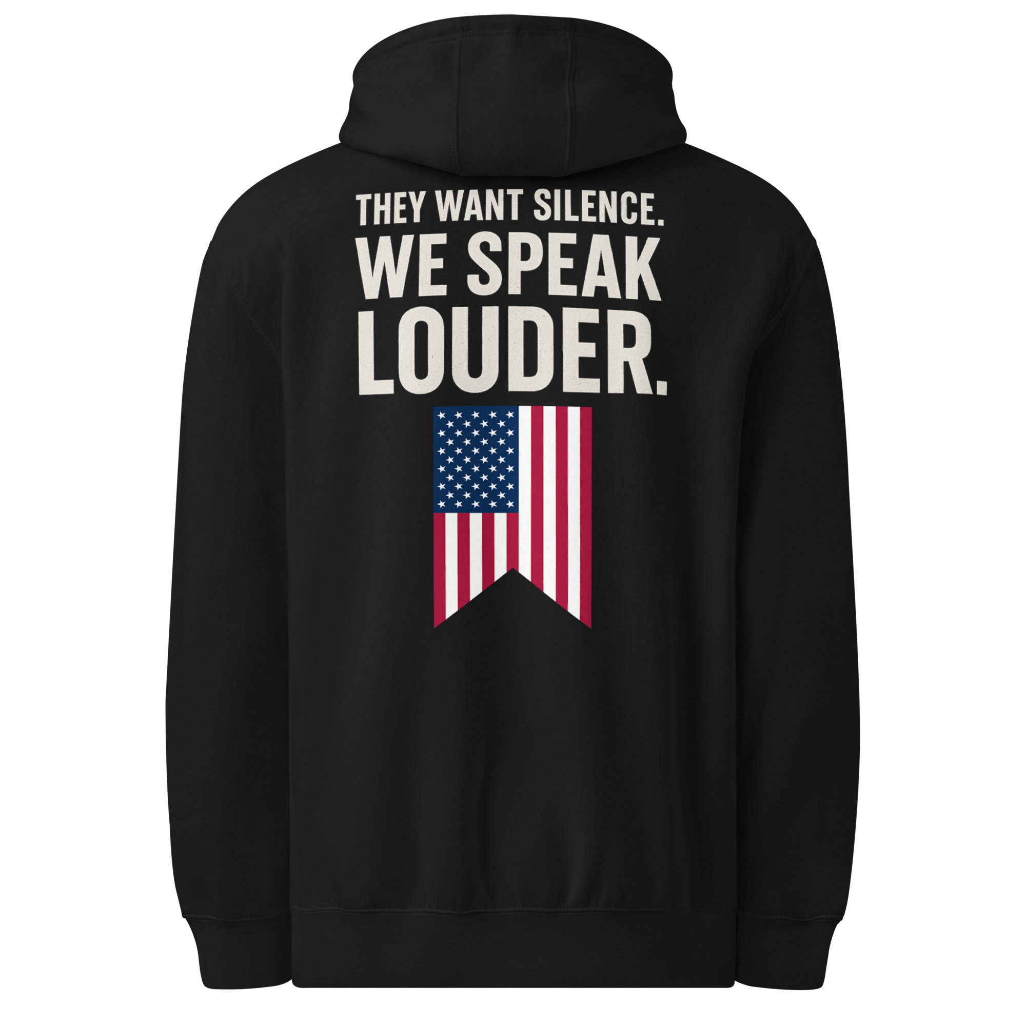 They thought they could shut us up. They thought wrong. This hoodie is more than cotton, it’s a battle flag for free thinkers who refuse to bow down. With bold lettering and American pride stitched into every thread, it’s a reminder that freedom of speech doesn’t die easy. Wear it loud, wear it proud, and let the world know: their silence fuels our voice.