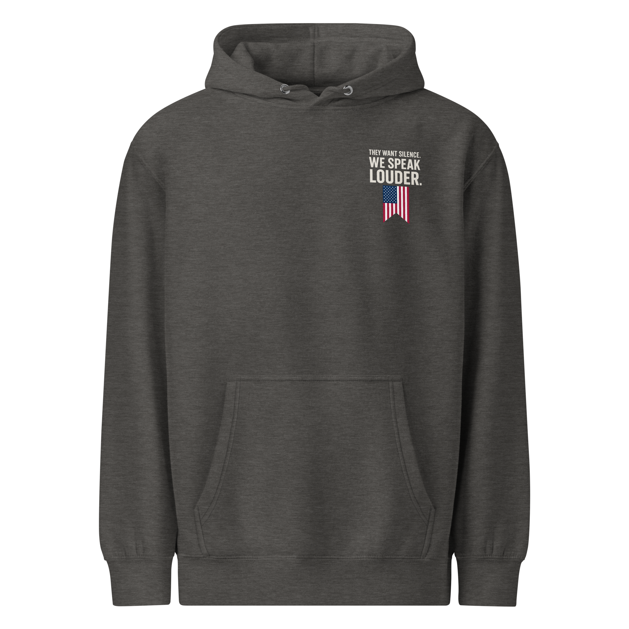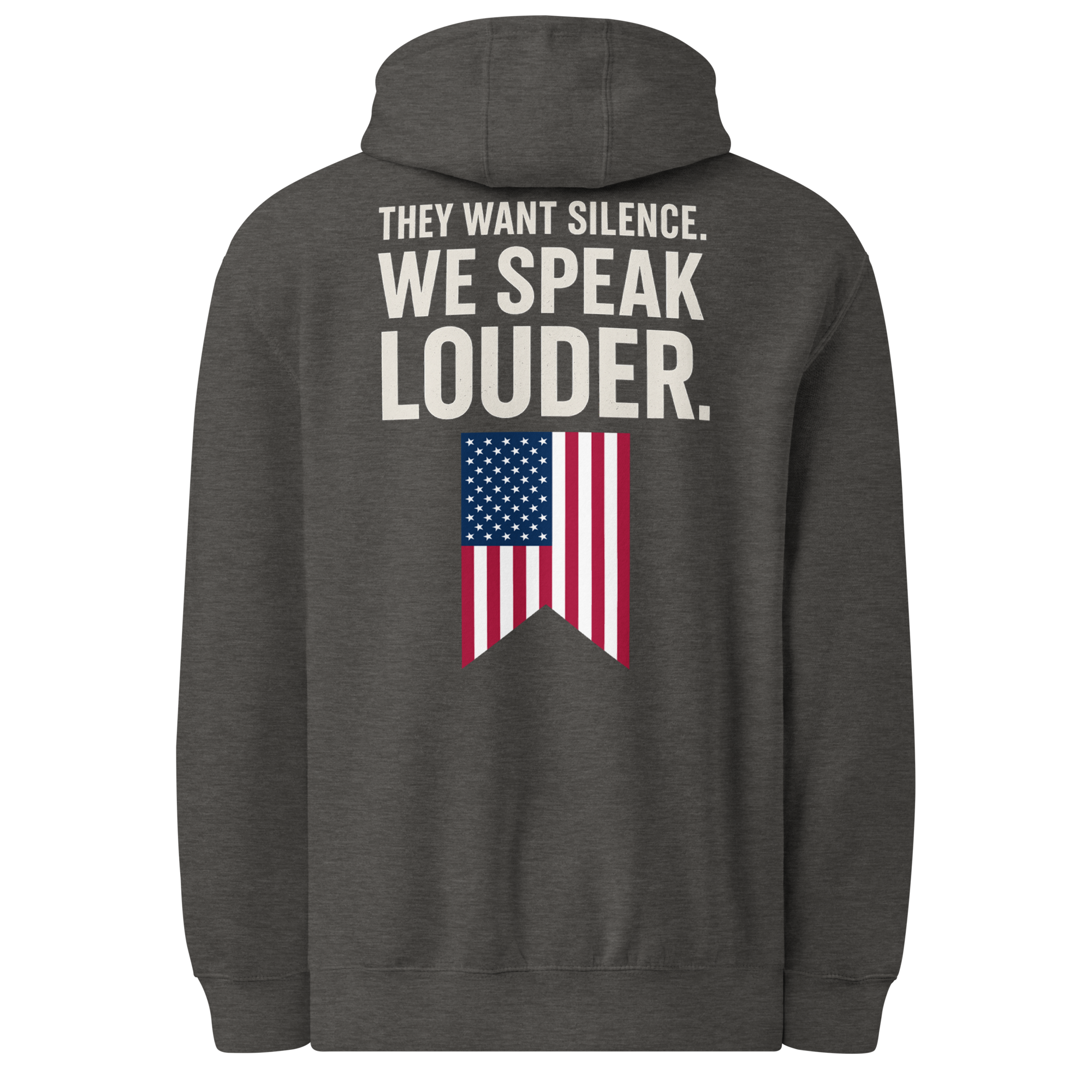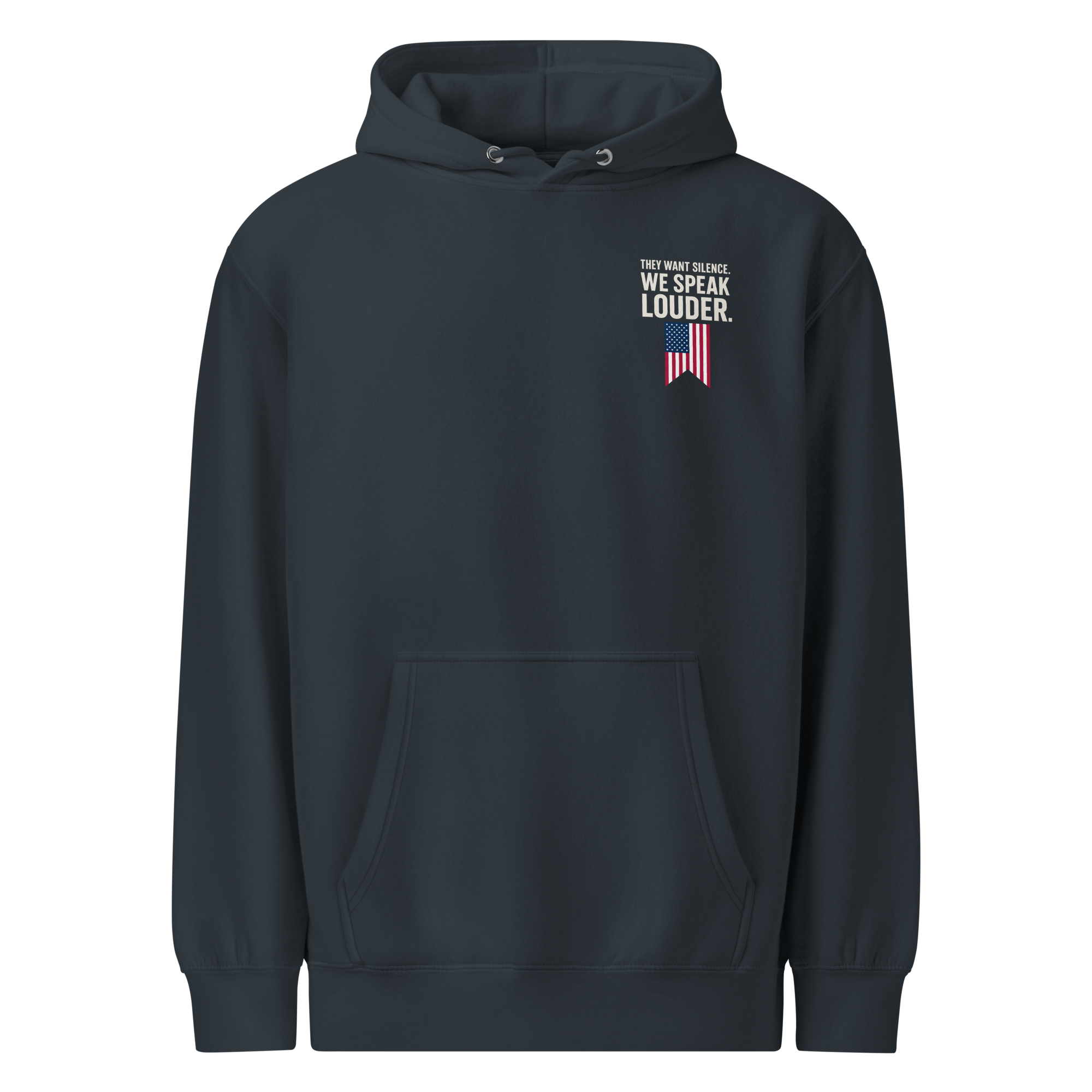 They thought they could shut us up. They thought wrong. This hoodie is more than cotton, it’s a battle flag for free thinkers who refuse to bow down. With bold lettering and American pride stitched into every thread, it’s a reminder that freedom of speech doesn’t die easy. Wear it loud, wear it proud, and let the world know: their silence fuels our voice.