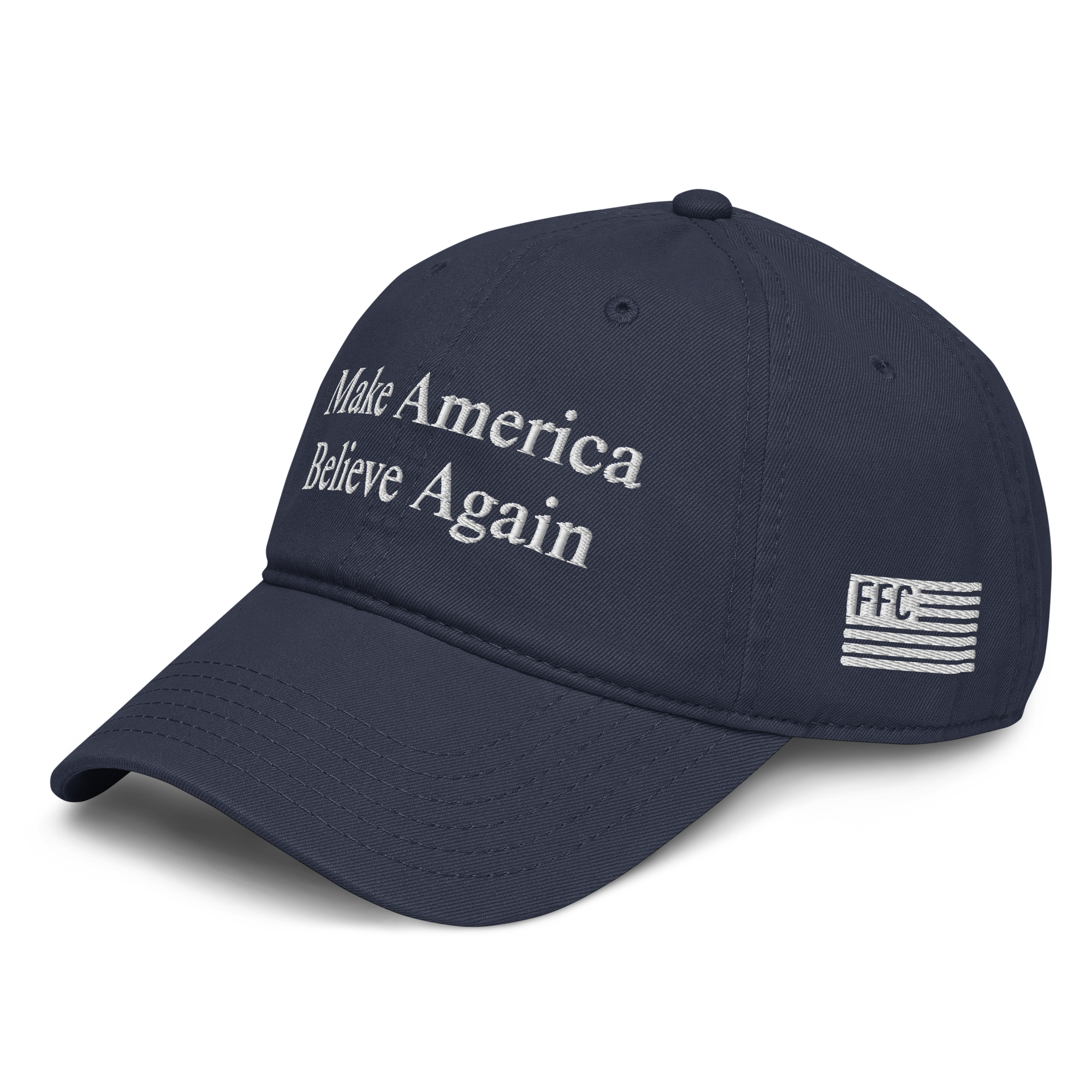 A classic dad hat with a message that can mean more the longer you think about it. It's about coming back to what matters; faith, hope, and something bigger than ourselves. However people take it, for you it starts with God. Easy to wear, easy to start conversations, and a simple reminder that belief still matters.